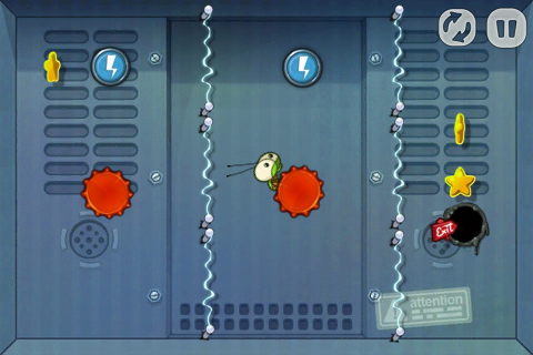 還有另種同樣危險的東西是通電的牆(ElectroWall)。茲茲作響的電流真是讓人怵目驚心,碰到的話一樣會瞬間化成灰燼。找找看附近有沒有畫著白色閃電圖案的藍色圓形開關,然後把電流關上吧!既可以解救小小生命,還可以節能減碳做環保呢!