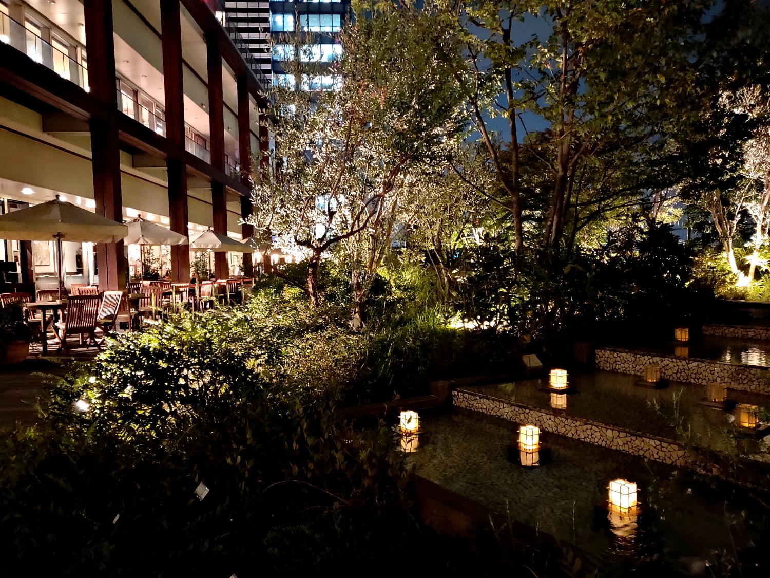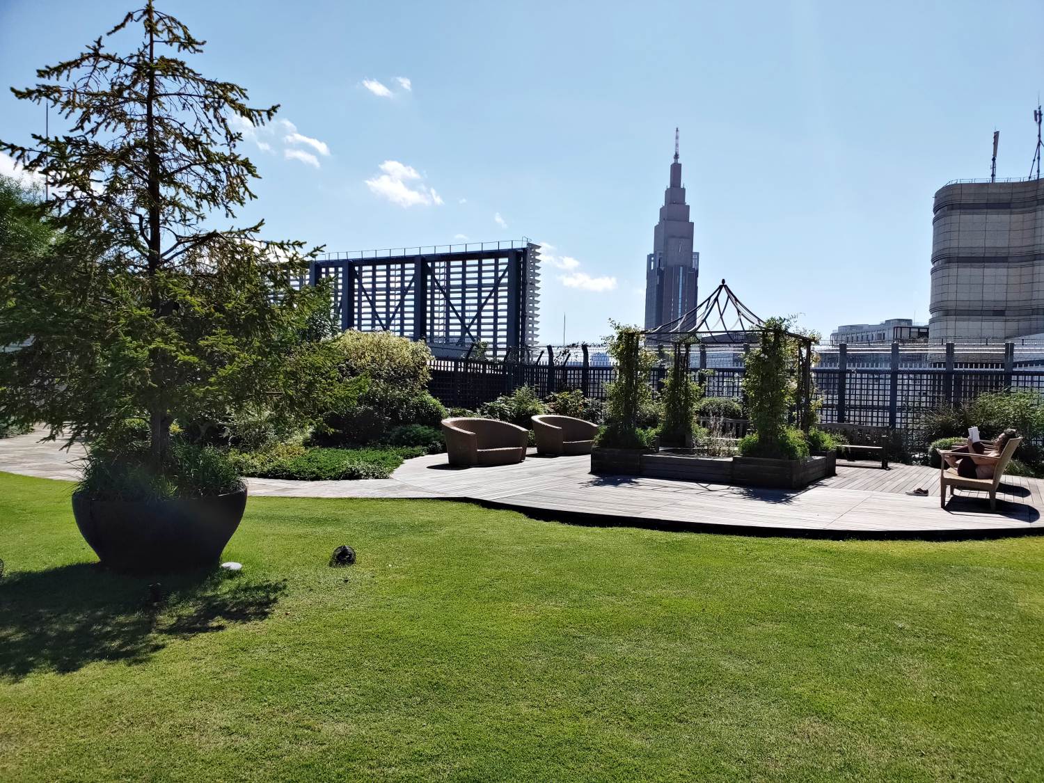 來店家用餐的人可以選擇戶外座位,一邊欣賞風景並品嚐美食,而一般民眾也可以在開放時間內進入庭園散步。新宿高島屋附近有很多高樓,知名的NTT DoCoMo代代木大廈也在旁邊,因此可以近距離欣賞到夜間閃閃發亮的大樓美景。