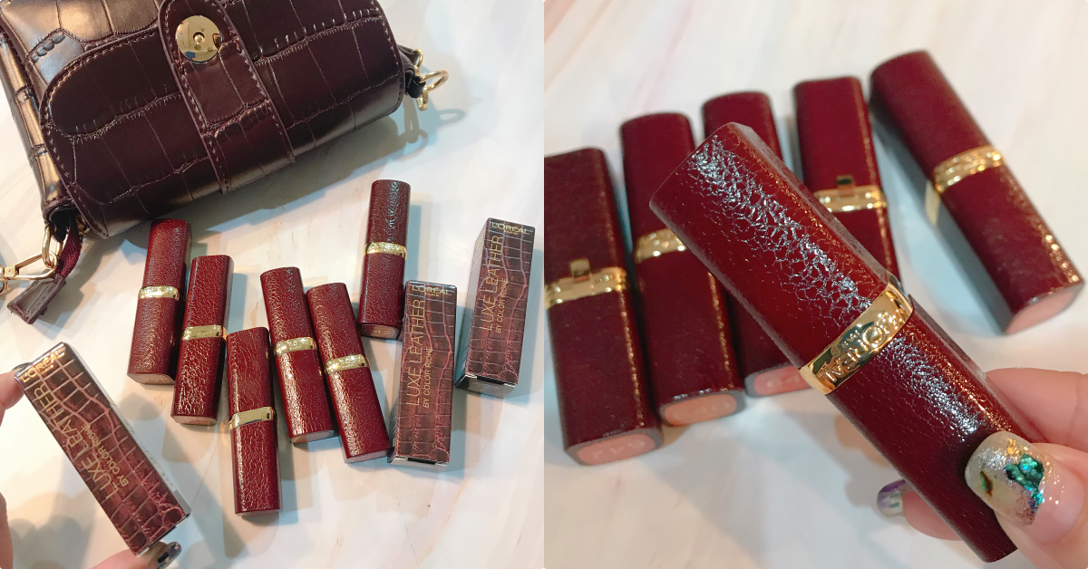 L’Oréal Paris 巴黎萊雅全新推出限量「奢華皮革訂製唇膏」,唇膏包裝保有皮革原始細膩紋路,更搭配金色環狀封口,顯現出低調奢華非傳統的設計風格。(在手中真的質感爆棚!媲美精品的質感,加上超美的顏色才470,價錢實在太佛心了!)