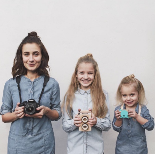 同樣是拿著相機,媽媽是拿單眼、姐姐拿著拍立得,而妹妹則是拿可愛的LOMO相機,年齡和相機的難易度剛好成了正比。(身高也很剛好地排成一條斜線XD)