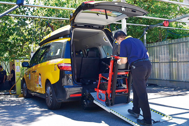 為幫助更多道路弱勢族群,享有暢行無礙的日常交通生活,台灣大車隊提供無障礙計程車服務已逾五年,服務範圍包括台北、新北、台中、台南、高雄等鄰近縣市,不僅設立了輪椅區,更在台北、新北地區試行推出履帶式爬梯機新服務,能乘載最多150公斤的重量,幫助廣大居住在無電梯公寓的輪椅乘客,無須再擔心上下樓的危險性或隨之可能產生的身體不適,同時大幅減少司機協助行動時的身體負擔、以及免除傳統背扶抱的風險,由於減少肢體接觸需要,更能避免傷口二度受傷,讓高齡長輩與身障朋友外出就醫或出遊遠行,因為有了一個友善又方便的交通工具,而獲得更完善的安全照料,享受一路上體貼舒適的搭車時光。
