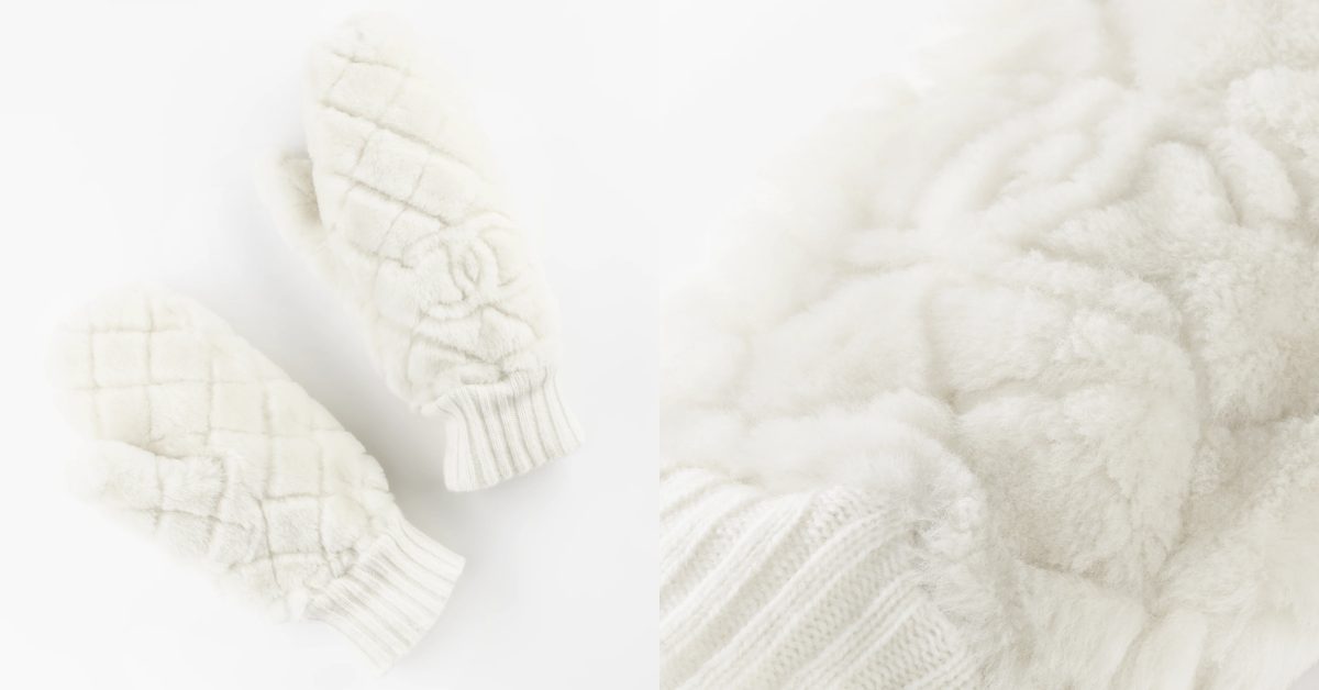 奢華的手套首選當然非香奈兒莫屬!採用雙面剪小羊皮製成的厚實連指手套,中間的雙C標誌低調優雅,搭配品牌經典的菱格紋彰顯香奈兒的特色,戴上這款也能呈現女性可愛的一面,很適合在寒冷的下雪國家戴上!