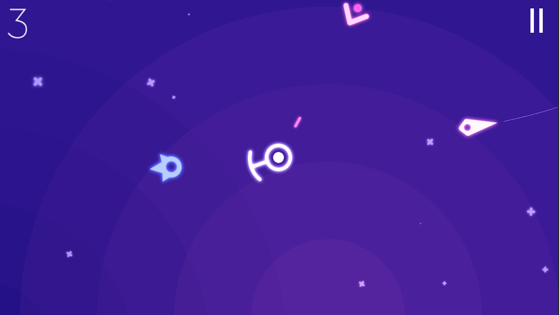 宛如象形文字般的設定,讓畫面看起來乾淨清爽,玩法也非常簡單,只要利用像是標點符號「)」的一端迴避或攻擊敵人即可,越玩到後面速度會越快,看似簡單其實卻十分考驗反應力呢。