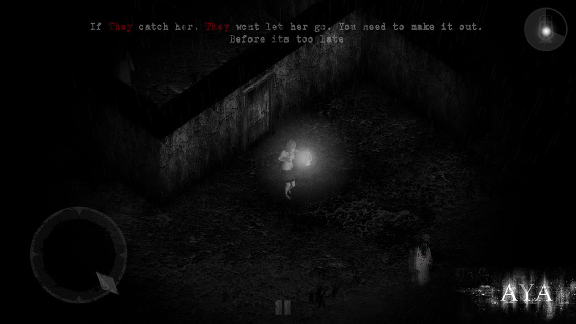 現在的手機遊戲越來越精緻,《Aya》就是其中之一,女主角Aya要避開邪靈,並在13個房間中闖關,手無寸鐵只有一隻手電筒,堪稱是女版的《Slender Man》遊戲,詭譎的氣氛加上微弱的光線,即使是用手機玩也讓人感到恐懼。