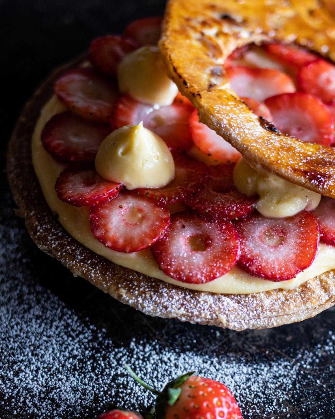 店內超有人氣的「NAPOLÉON」可說是必點的招牌!運用香草和利口酒調味的香濃卡士達醬,搭配新鮮酸甜的草莓切片,夾在杏仁烘烤而成的酥皮之間,不只香氣四溢,更達成鹹甜的完美平衡,讓人不禁想一口接著一口,停不下來!