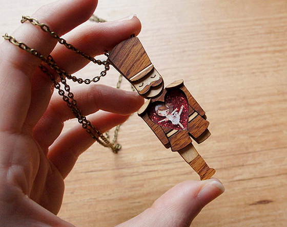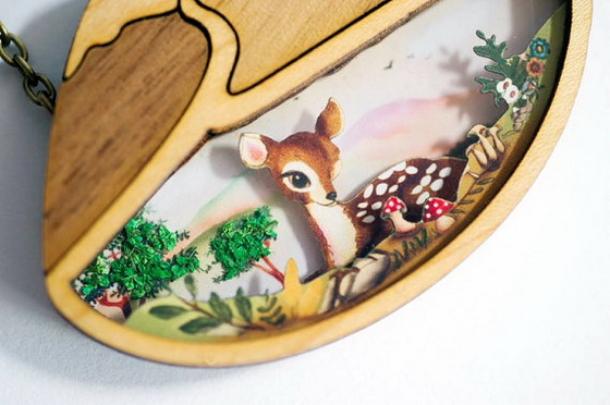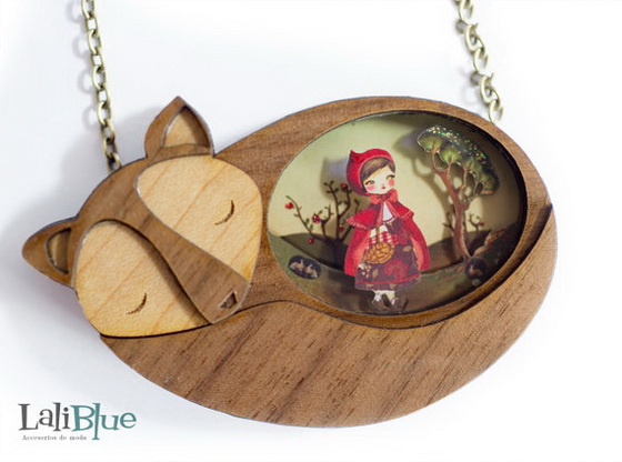 這一系列以木頭為媒材,搭配手繪風格與立體層疊手法所打造的「3D木製項鍊」,是LaliBlue讓童話故事削去孩子氣,並能以充滿大人感的復古手作風格登場的關鍵。