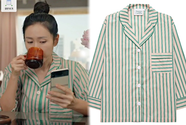 淡淡的粉紅底+綠色條紋,孫仙綁著丸子頭穿上這款成套的居家服,是不是超青春可愛?這個來自韓國設計師品牌「Snappy Cuddle(스내피커들)」也因此掀起搶購熱潮,一查發現…原來一大票韓星都穿過。