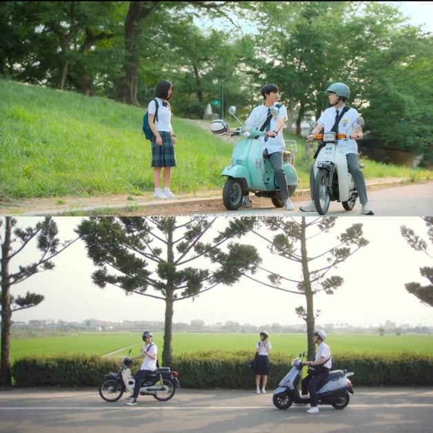 「權珉周/陳韻如」錯過公車,上學快要遲到時,遇到「南時憲/李子維」和「鄭仁圭/莫俊傑」,三人一起騎機車,「鄭仁圭/莫俊傑」還載「權珉周/陳韻如」,都安全抵達學校,也都同時被抓包體罰!(笑)
