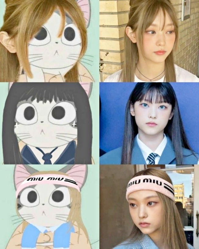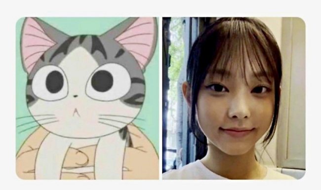 NewJeans由Minji(金玟池)、Hanni(范玉欣)、Danielle(牟智慧)、Haerin(姜諧潾)以及忙內Hyein(李惠仁)5位女孩組成,其中擁有略為上揚的杏型大眼、小巧嘴巴、尖尖耳朵外加巴掌臉蛋的成員Haerin,因為臉蛋跟舉動太過神似「小貓咪」,直接被認證是「韓國貓咪相偶像的代表」(笑),還有網友表示:「什麼貓咪相?他就是一隻貓。」