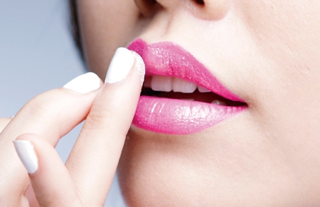 用手指沾亮粉,從雙唇中央往唇廓外圍輕拍,微發亮獨特不誇張。圖/大美人提供