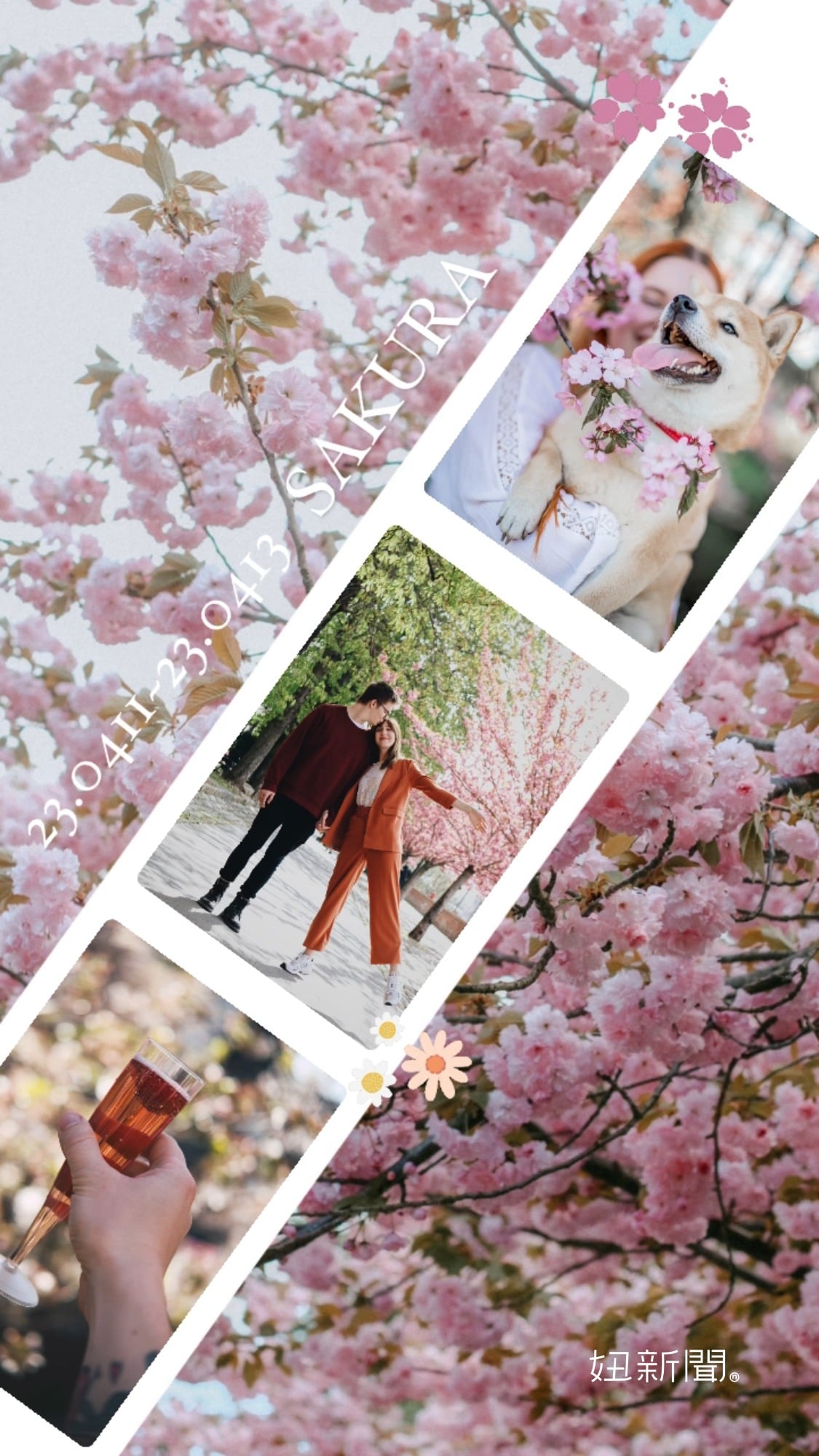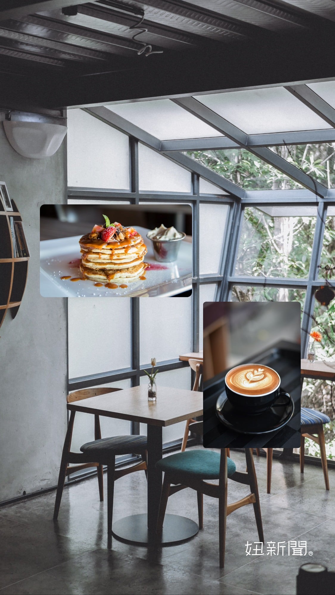 入門款「迷你三格」排版,首先挑一張留白部分比較多的相片上傳當背景圖,最好是咖啡廳、海邊、公園等場所的照片。第二步添加兩張在第一張場所圖裡拍的人物或物品照,例如「咖啡廳-咖啡/點心」、「公園-花/蝴蝶」等組合,這樣就完成啦~