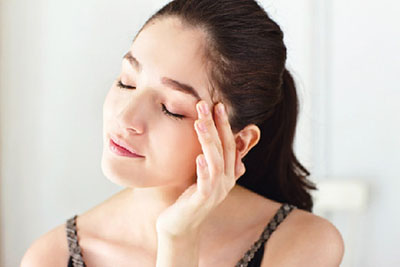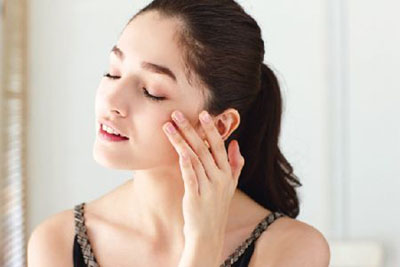 指腹沾上質地,從雙頰開始塗,能讓此區獲得最多滋潤。特別乾燥時,可全臉塗完,再用1/2的用量加強雙頰一遍。