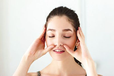 將兩手大拇指扣住蘋果肌下方 往上滑到太陽穴,重複3回、不怕代謝跟著冬眠。