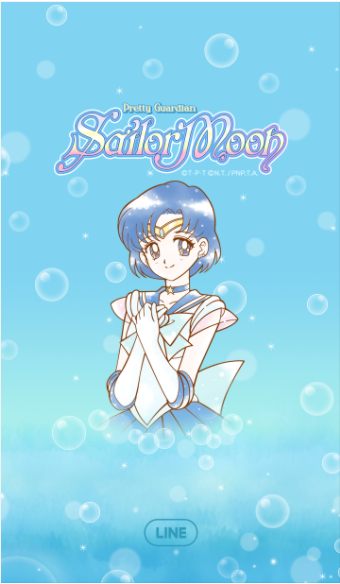 點入LINE的頁面,會先看到氣質漂亮的水星仙子迎接你的到來~整個主題以水星的「藍」為代表色,並搭配她在使出絕招時會出現的泡泡為背景的主要圖案。