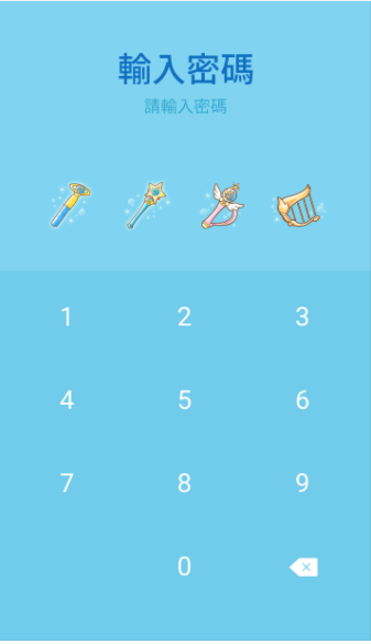 手機小姐覺得最吸引人的就是密碼頁了!水星藍超級美~~四格密碼所代表的圖案分別是初代、R代、S代的變身棒與在SS代登場的武器「水星豎琴」,感覺會讓原本沒有設密碼習慣的人因此設定密碼呢!(這麼夢幻一定要讓它派上用場啊!)