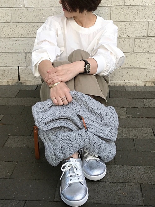看似平凡的OL穿搭,只要像mayu.t一樣選擇銀色的休閒鞋,就能穿得舒適又時尚喔!