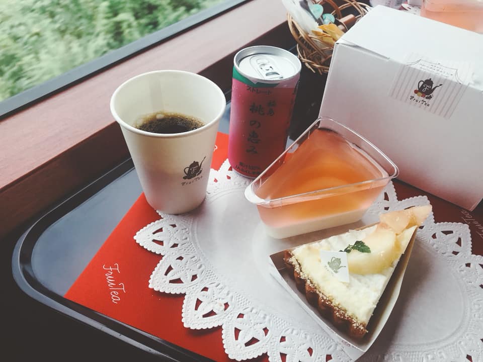 每位乘客都會拿到一份「點心套餐」,除了有2款福島縣產水果等的特製甜品(隨季節變換菜單),還有1杯熱咖啡、1瓶特色飲品,份量頗足夠。