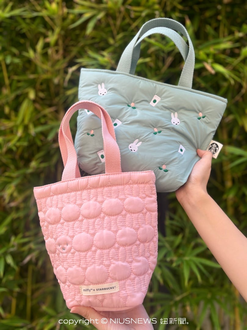 包袋系列以粉白拼接搭配絎逢設計,不僅展現柔和細緻的質感,更提供大容量托特包、隨行杯袋與多功能包等多樣選擇。而同步推出的清新綠款,則以精緻刺繡呈現 miffy 圖樣,完美融合簡約與療癒氛圍!