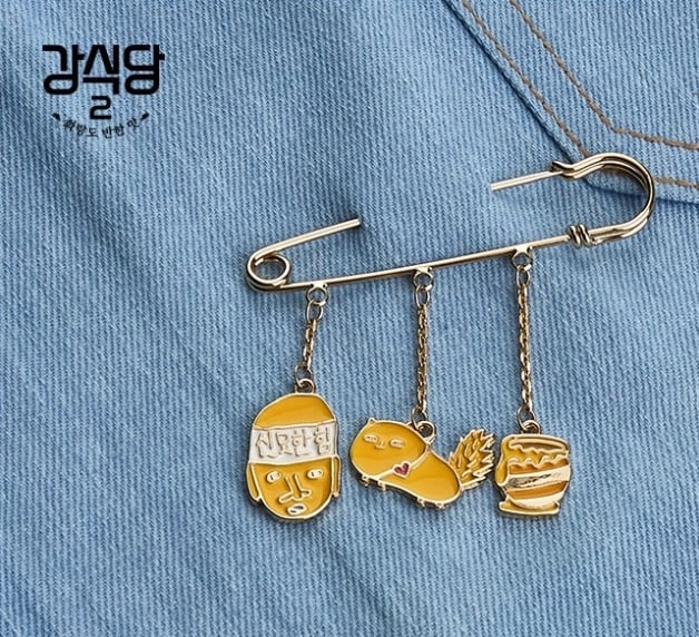 六款成員的個人別針,每款都會有神妙漢和美妙漢,之後再加入成員的個人特色,像是宋旻浩的可樂、P.O的蜂蜜罐、姜鎬童的皇冠、李壽根的勞力工人、殷志源的百匯(聖代)以及安宰賢的平底鍋,話說製作單位不做一下我們「悲觀偶像圭賢」的嗎?(跪求)