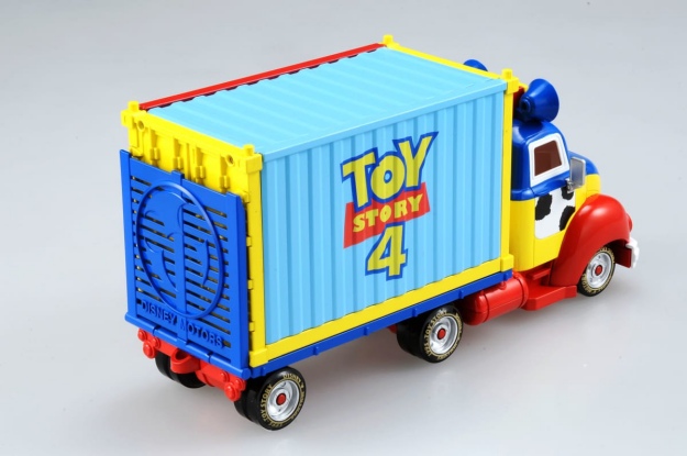 最後要介紹的玩具車可說是這系列的「彩蛋」!造型繽紛又可愛的大卡車可以讓你收納「八個小汽車」,在貨櫃左側還印有大大的Toy Story 4,集經典於一身!本系列玩具車將於6月29日於日本全國的玩具店、百貨等地方上市,是說妞編輯搜一下關鍵字發現現在在台灣也可以買到了,粉絲們敬請留意囉!