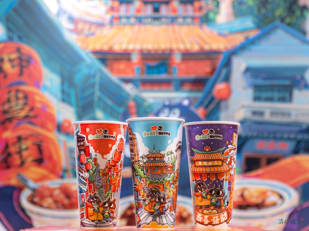 清心福全攜手台灣街景建築插畫家「Nuomi 諾米」,以農曆春節為主題、推出三款紙杯。「台灣台南款」看得到許多名勝古蹟如赤崁樓、安平古堡、孔廟,還有知名打卡景點林百貨,道地的街邊小吃攤喝手搖飲也能感受到台南濃厚的歷史底蘊。