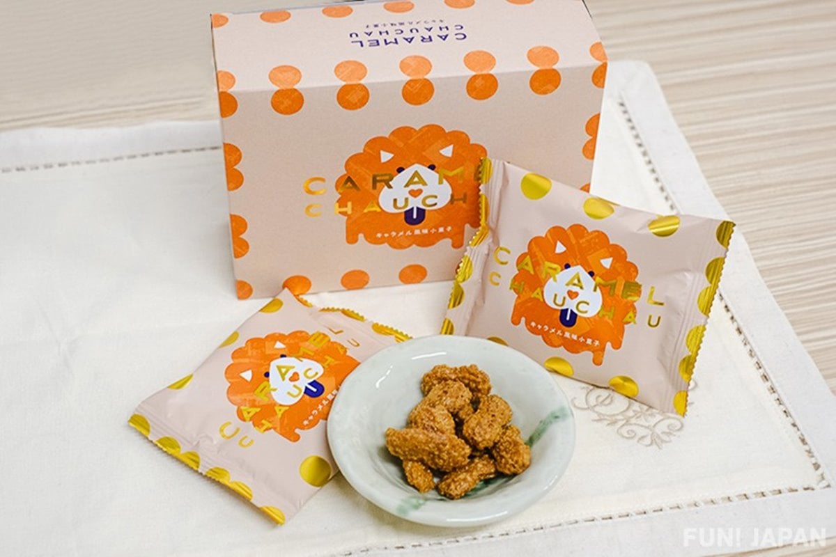 「CARAMEL CHAUCHAU」是一種以關西方言「CHAU(不是)」和狗的品種「CHAUCHAU(鬆獅犬)」為名的焦糖口味餅乾。正如其可愛的名稱,包裝上繪有鬆獅犬圖片,可愛到讓人愛不釋手。