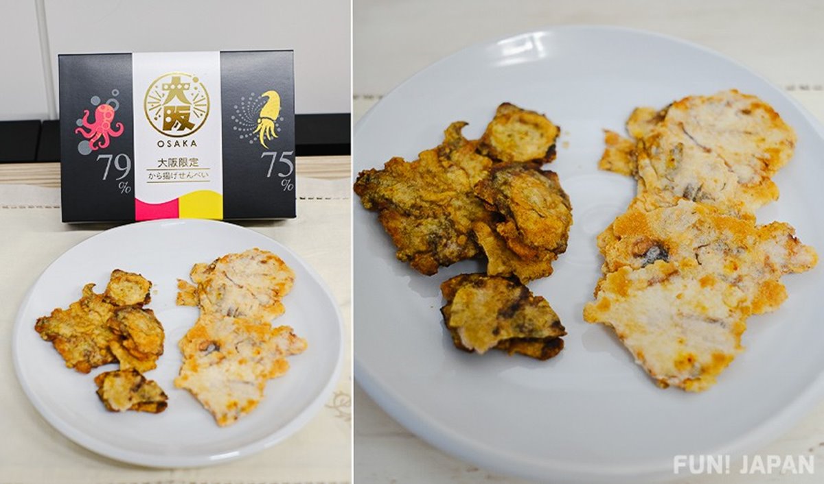 可享受到當地名產炸雞和海鮮風味的「大阪限定香脆海鮮仙貝」,裡面有辣味章魚仙貝以及濃郁咖哩口味的魷魚仙貝。採用獨立包裝,方便與親朋好友分享。