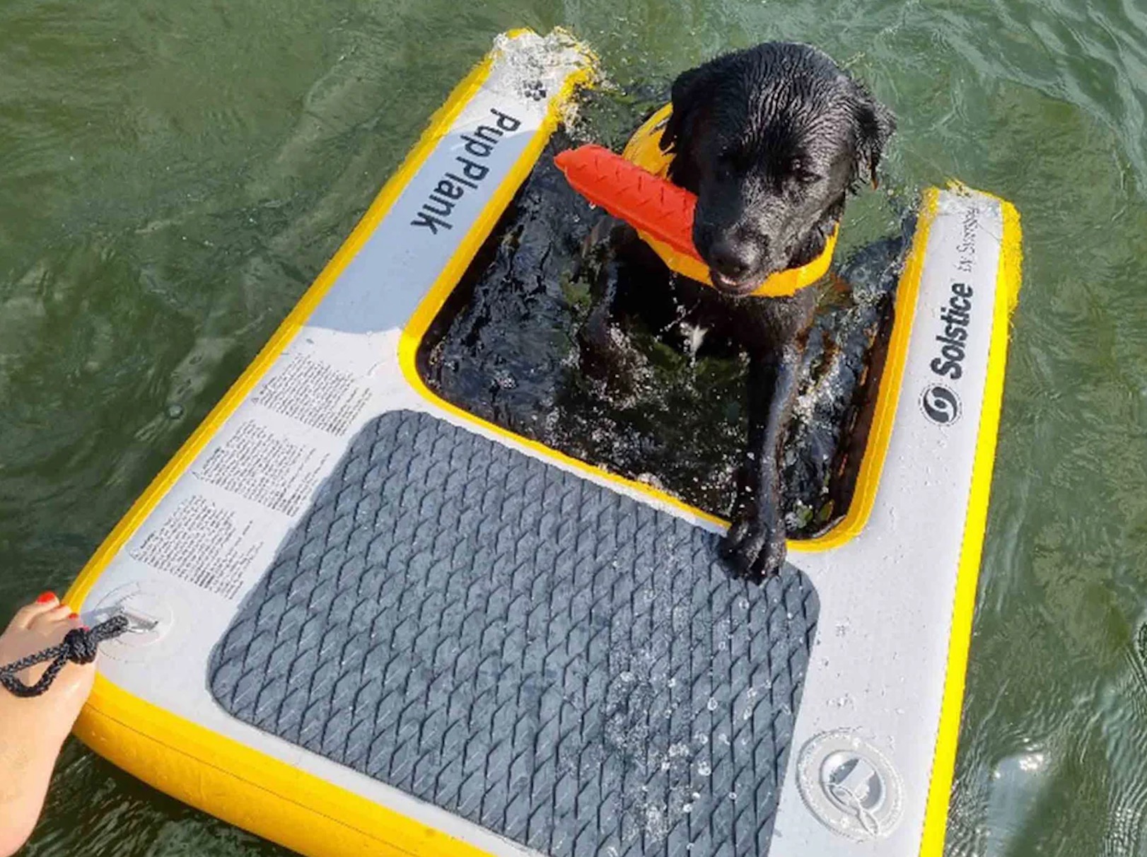 泳池裡準備一個小浮台,讓狗狗有地方可以休息。當他放鬆下來後,試著引導他從浮台跳回水中,再游向你!慢慢增加距離,適合讓初學游泳的狗狗,一定會越玩越有自信!這個遊戲能幫助狗狗學會在水中冷靜,還能訓練他的方向感和跳躍能力,相當實用。