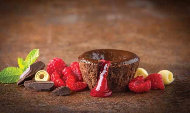 咬下蛋糕的瞬間,覆盆莓醬便緩緩流出,不禁讓人食指大動,微冷的過年夜,就讓巧克力熔岩蛋糕再熱鬧一波吧!