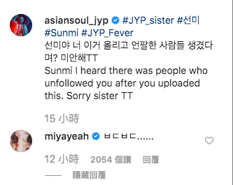 事情爆發後,之後朴軫永也很有誠意的在個人SNS上傳道歉文(笑),曬出宣美SNS照片截圖寫著:「宣美啊,聽說上傳這個之後出現退追的人,抱歉啦!」(自DISS?)果然宣美本人也親自跑去回應,但是只回了氣噗噗的四個字「ㅂㄷㅂㄷ(氣到抖的流行語)」,搞笑回應再度讓粉絲笑噴啦!