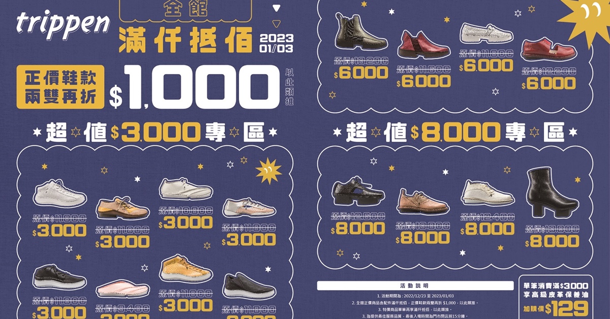 歲末將至,告別2022同時,相信大家也迫不及待跟疫情Say Goodbye啦!為了歡慶疫情正式解封,SHOEX祭出年末感恩特賣會,攜手獨家代理精品鞋款雙強品牌,推出多款精選商品優惠,包含英國經典潮履品牌Dr. Martens精選節慶配色1461三孔、1460八孔馬汀,現在不用3張小朋友,只要2,500元就能無痛入手,打造秋冬時髦穿搭!還有與塗鴉鬼才Basquiat傳奇畫作的聯名系列,下殺66折優惠邀你一同穿上俏皮塗鴉,開心迎接2023!擁有德意志高品質血統的手工靴品牌Trippen則祭出多款兼具舒適度與時尚外型的真皮鞋款,萬元直降3,000元的超狂特惠價絕對是行家必敗、錯過不再!