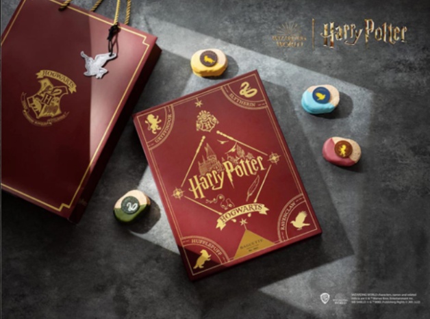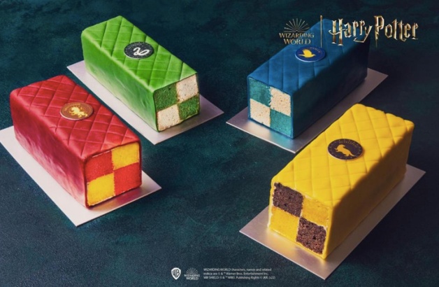 今年台北君悅禮品烘焙坊首度聯手哈利波特獻上年度魔幻逸品,帶來麻瓜們入學必備單品,像是「霍格華茲手提皮箱-學院馬卡龍」、「嘿美信使禮盒-達克瓦茲」、「巫師歡迎禮-曲奇餅乾」等禮盒,即將開學的巫師們,在分學院之前,先來品嘗立體蛋糕吧!