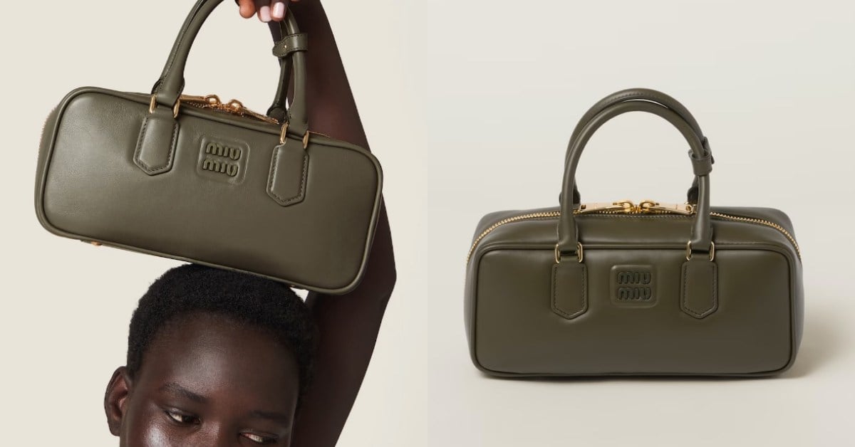 除了適合浪漫約會的包款,戶外休閒的搭配MIUMIU也幫妞妞們安排好了!Arcadie皮革手挽袋一推出就讓許多MIU粉心動~不僅是有別於高調的Matelassé,知性又不失品牌特色的設計看了也好想收一咖!正面同樣飾有MIUMIU的標誌,沈穩的軍綠色也適合通勤搭配~