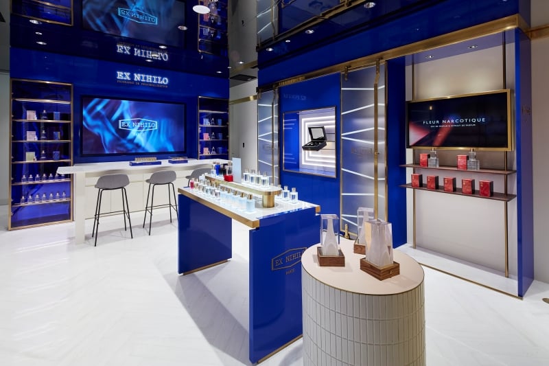 EX NIHILO 從香氛創作核心出發,營造沈浸式體驗。EX NIHILO以獨家技術,混合未來感的儀式與法國香氛工藝之最,成果獨一無二。店內香氛皆由巴黎的首席調香師創作,創意無限,只使用香根鳶尾或格拉斯玫瑰等頂級素材。並由巴黎的香氛專家,為台北旗艦店獨家挑選多款旗艦作品,希望能傳遞巴黎氣息。