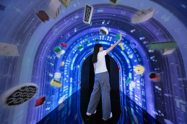 太空艙門打開後,妞妞們會抵達以光影打造的「穿梭時空隧道」,跟著樂高積木一起在銀河隧道裡穿梭,感受銀河的奧妙,共有三種模式可以體驗!