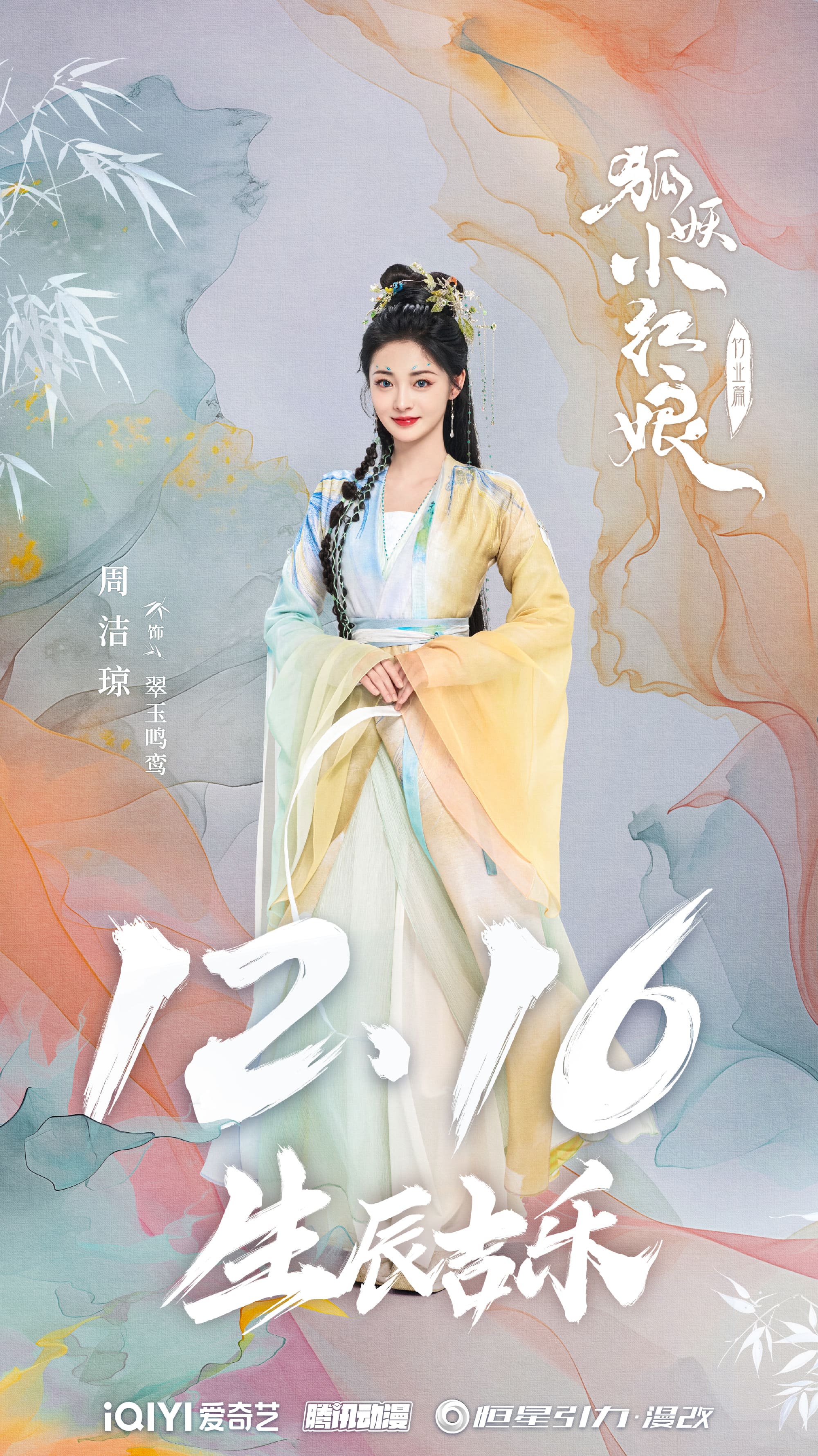 「周潔瓊」在《竹業篇》劇中飾演「翠玉鳴鸞」,是水蛭精族長翠玉靈的妹妹,靈魂來自變異金晨曦。爆米花小姐第一次認識周潔瓊是在《大唐女法醫》,只可惜後續好像就很少看到她出演古裝劇,作品產量似乎偏少。