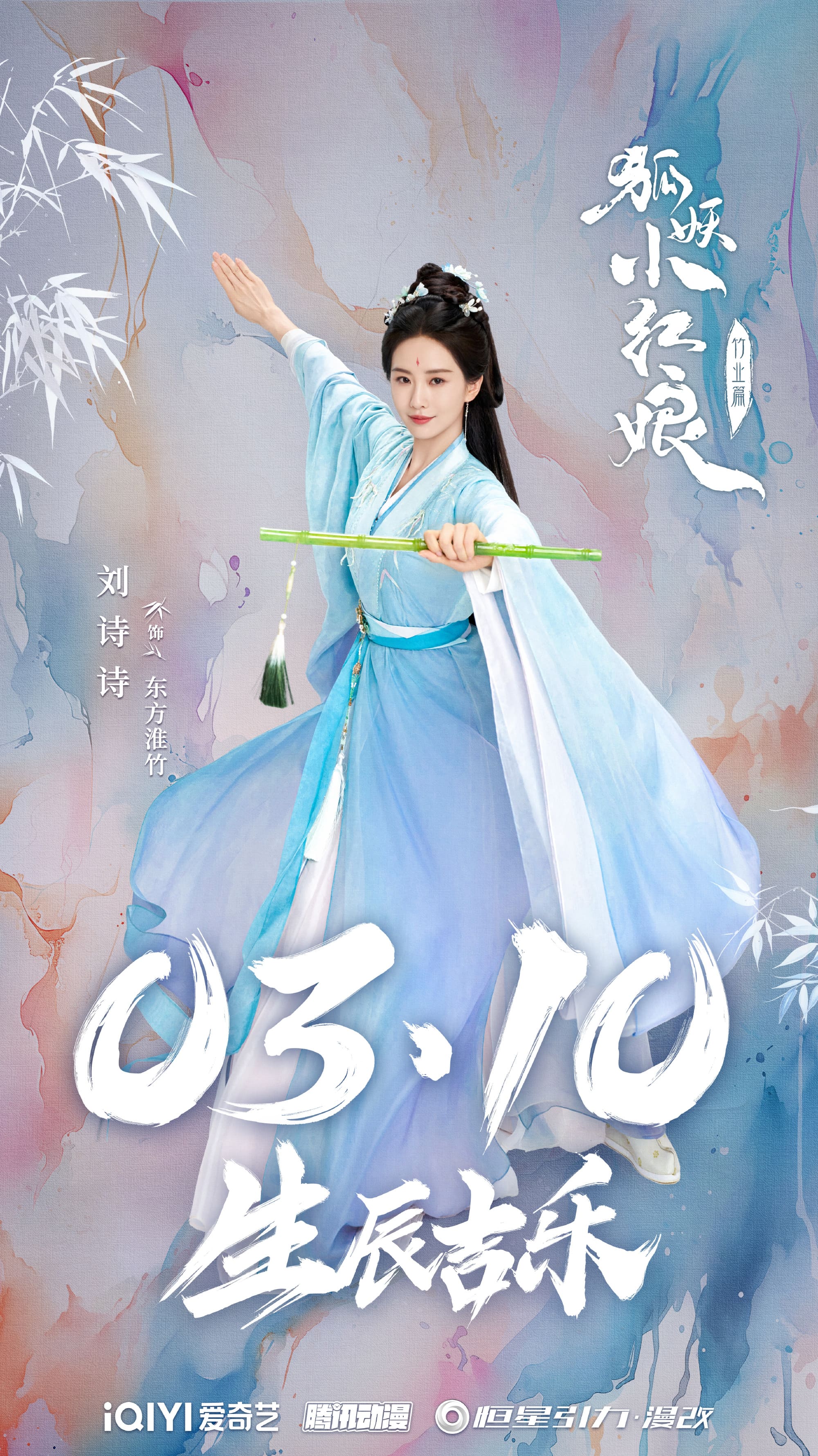 「劉詩詩」在《竹業篇》劇中飾演「東方淮竹」,是東方秦蘭(安悅溪 飾)的姐姐,一樣天生靈力強大、冷靜聰慧,與一氣道盟盟主王權弘業(張雲龍 飾)結婚後,遭人暗算而不幸身亡。