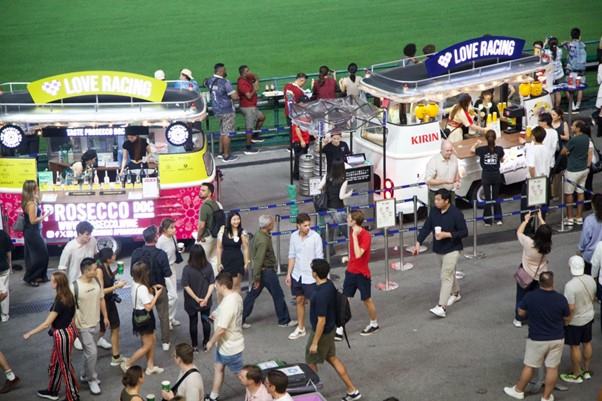 啤酒園周邊還設有多台主題餐車,從冰涼啤酒、紅白酒到炸物小點、亞洲風味小吃應有盡有。而最令人興奮的是,這區就緊鄰賽道——不僅可以清楚看見馬匹奔馳時的肌肉線條與騎師競速的畫面,還能感受來自觀眾席的歡呼與熱情。