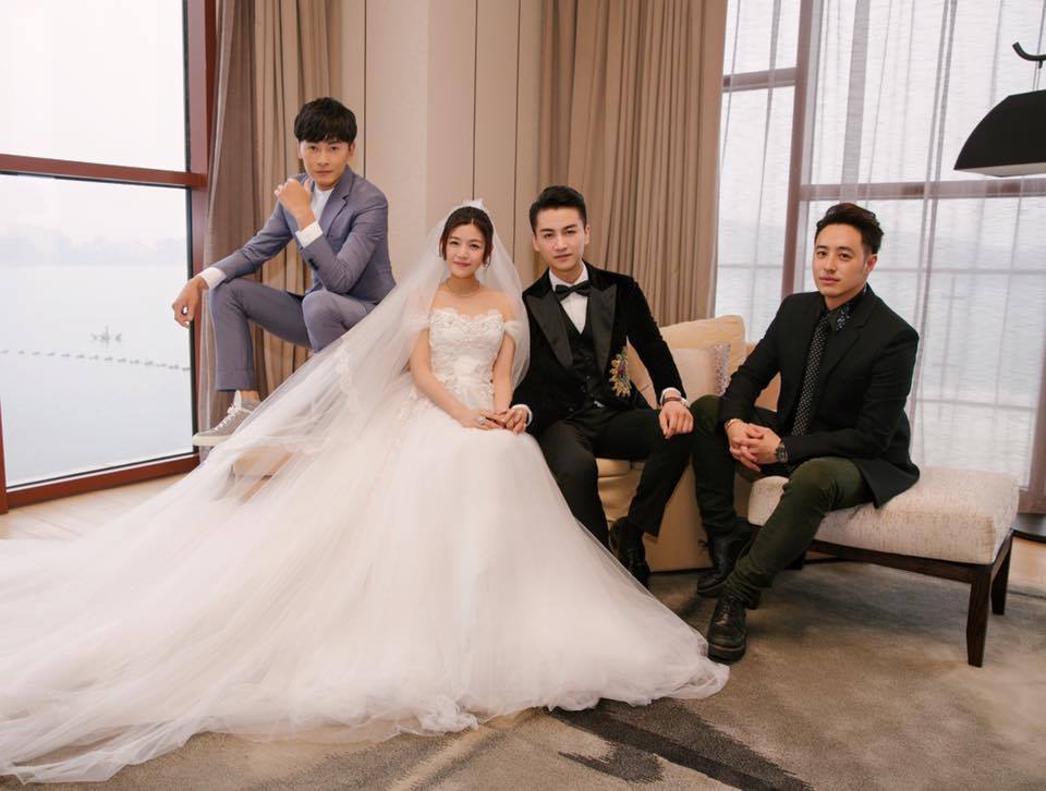 不過眾多曝光照片中還有一張氣場相當強大的合照,是鄭元暢、潘瑋柏與新人的合照,這張照片被讚說「顏值也太高了吧!」,一陣子沒公開曝光的潘瑋柏以酷帥樣子現身,讓粉絲們也直呼「3帥加1美這畫面太賞心悅目了」、「偶像劇海報啊~」,要說婚禮外最吸睛,真的非鄭元暢這一幫人莫屬啊!