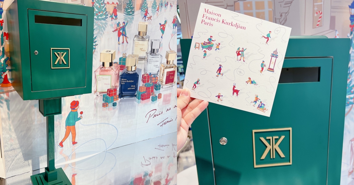 耶誕是祝福的季節,現場特別還設置了超可愛的復古歐式郵筒,凡於指定期間消費即贈MFK耶誕限定香氛明信片一張,寫下祝福的話語投入郵筒,為自己或親友獻上法式浪漫祝福,MFK會免費幫妞妞們寄送唷!明信片真的好可愛還有迷人香氣~收到的人一定會超驚喜!