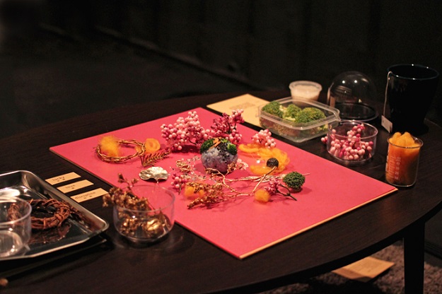 桌上的每種素材都代表一種情緒或是精神價值,像是起司球、脆蝦、飛魚卵、白芝麻,分別表示可靠、勇氣、亮麗與自信,各式的乾燥花有的代表愛、幸運或是溫暖,妞妞們可以根據自己的生命故事,找尋「最對味」的食材,拼湊出屬於自己獨一無二的故事樣貌。