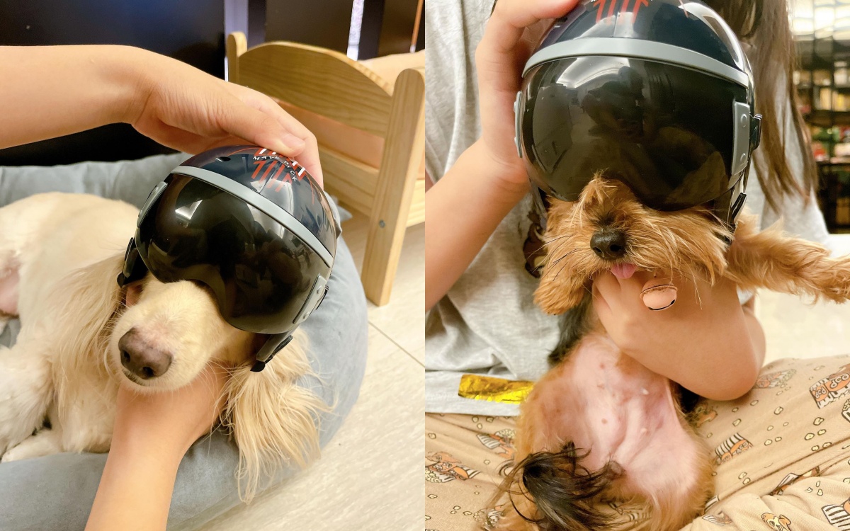 *貼心提醒各位鏟屎官,如果毛孩們堅持不給戴上頭盔,也不要強行戴上以免因為掙扎而受傷呦~