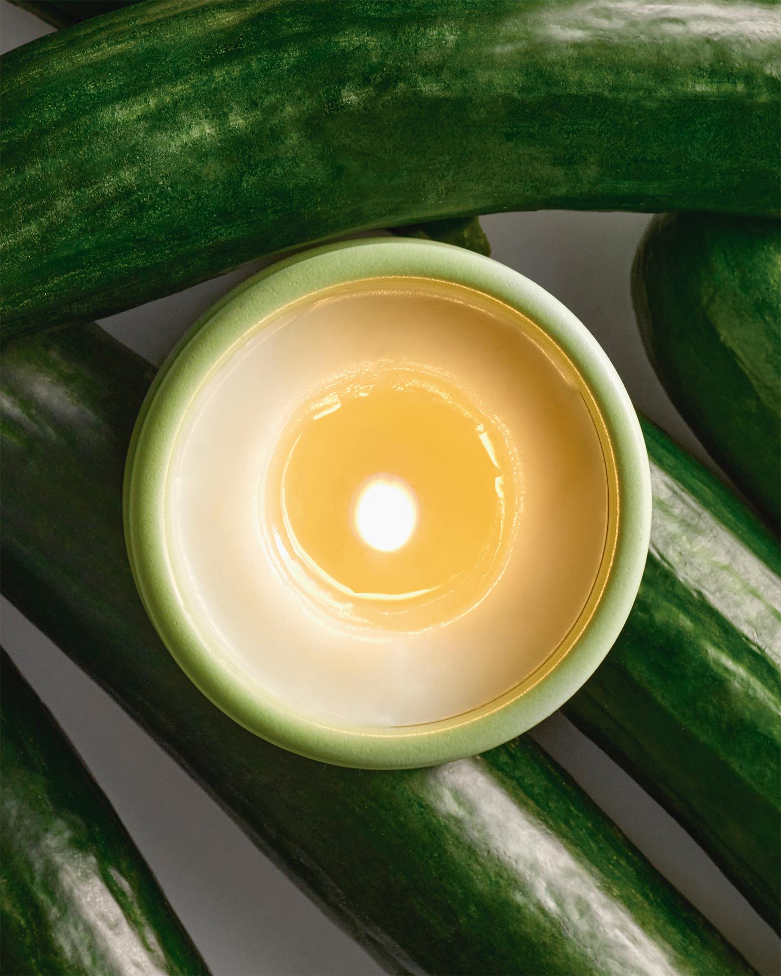 夏天悶熱難受,這時候來點清爽小黃瓜最開胃!但妞妞們想過,小黃瓜某天竟然搖身一變成香氛蠟燭的主香調嗎?LOEWE推出由創意總監JonathanAnderson與調香師NuriaCruelles及品牌大使吳磊攜手研發調配的小黃瓜香氛蠟燭,嫩綠色的杯身靈感來自小黃瓜切開後果肉色,給夏天增添一份清爽。(綠色也是吳磊最愛的顏色!)