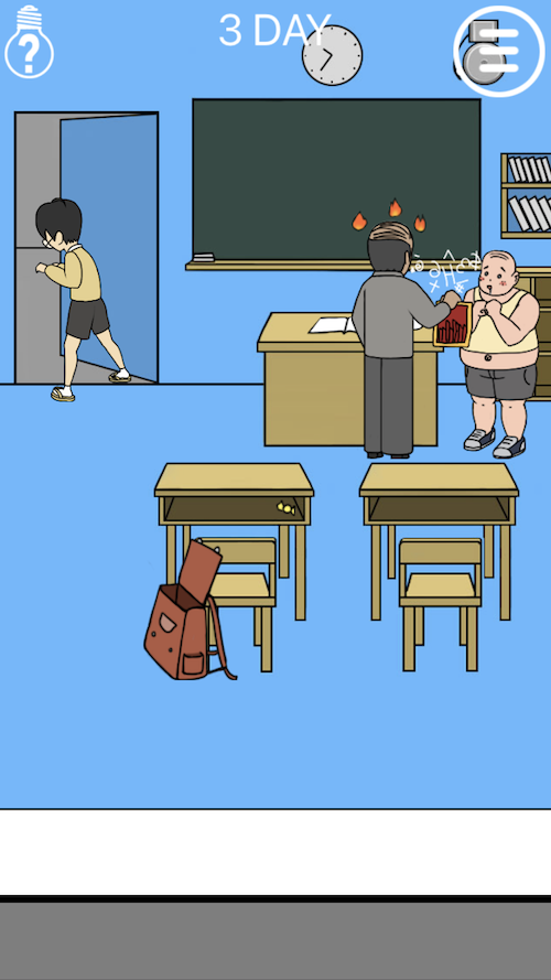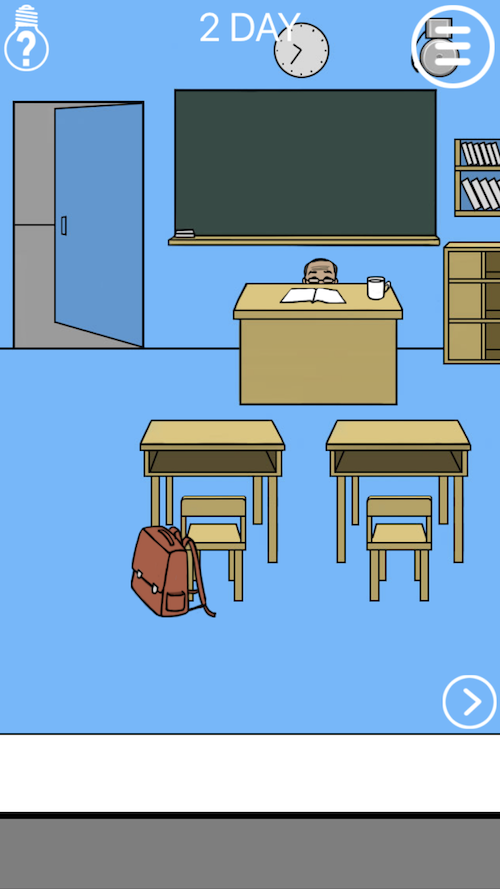 只要成功逃離教室,就可以前往下一關啦!如果不小心被老師抓到,學生就會露出準備挨罵的臉,必須闖過那一個關卡,才可以再繼續逃課哦~