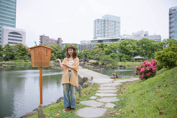 舊芝離宮恩賜庭園與小石川後樂園齊名,都是遺留東京內江戶初期的武家庭園。將觀賞式泉水庭園的特色展現的一覽無遺,非常適合在庭園內遊覽觀賞。這裡是除了水泥叢林外另一面具有歷史感的標的,不論是企業休息時間的場所或是觀光景點都是非常受到歡迎的。我們也和柴田紗希在這明顯感受到寂靜氛圍和四季變化的庭園內散步了一下。
