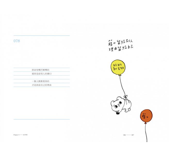 即使一個人,也是最像自己的那一個,去發現尚未發現的勇氣,去相信現在即使孤單的自己,也是為了練習成為最好的自己。