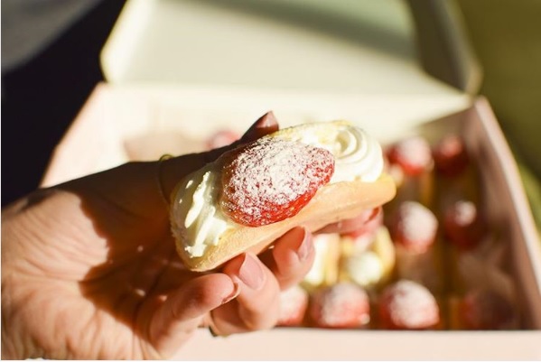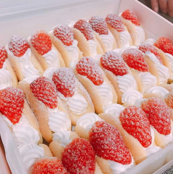 韓國最近最紅的草莓甜點大概就是這款歐姆蕾捲了!這個煎餅皮搭上鮮奶油和草莓(甜點就是熱量越高越好吃啊),而且這一盒裡面也太多捲了吧!竟然有24個!太澎拜了~