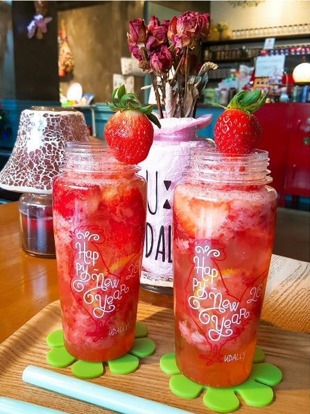 最近還新推出了「新年瓶」,雞剪影的瓶身配上紅紅的草莓檸檬飲品,很有過年氣氛啊!很適合過年來上一杯,喜氣洋洋!