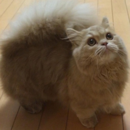雞年到,妞編輯要帶著萌金雞來跟大家拜年啦~咦,原來不是真的雞,而是帶著小雞頭套的可愛貓咪啦!這隻不到一歲的小可愛名字叫做Bell,來自東京,是新品種的小步舞曲貓(Minuet),特色是有著小短腿和松鼠般的超蓬鬆尾巴~