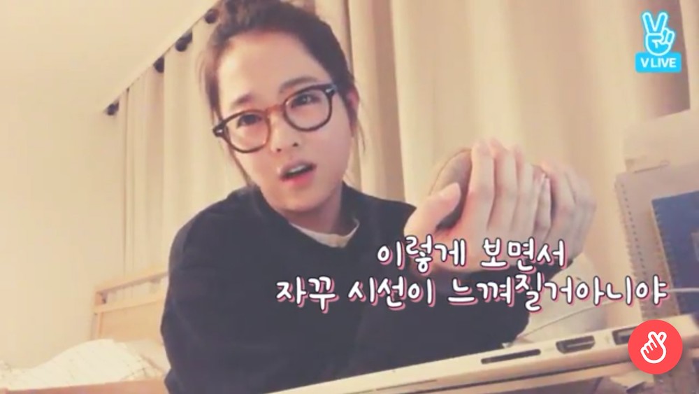 一開始搞不清楚VLIVE的操作,還把畫面弄反了!接著因為平時都是用手機登入官咖不熟悉電腦操作,所以詢問粉絲,又因為近視看不清楚,拿了眼鏡要戴,可是又找不到眼鏡布,乾脆就這樣戴著。